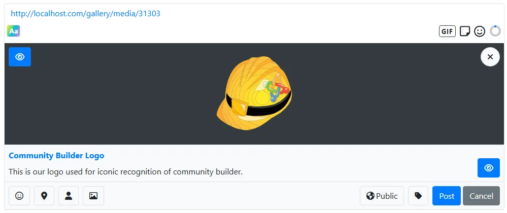 Metadata is now officially supported out of the box. So you no longer need to handle this manually. For both Albums and Media the Title, Description, Author, OpenGraph, and X (Twitter) metadata will output automatically. This includes outputting twitter card images AND media players. This even works when you paste a media URL into your own activity stream!