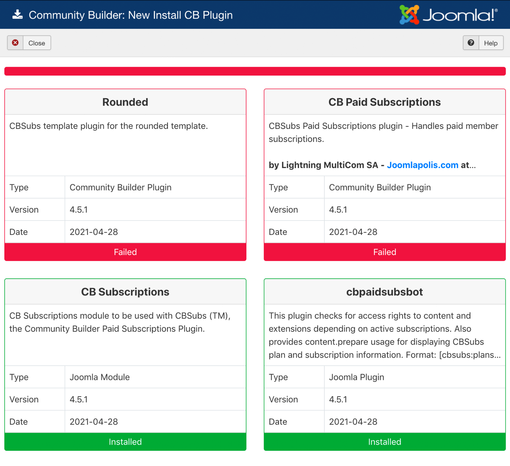 I have updated to the latest CB version and tried installing CB Subs 4.5.0