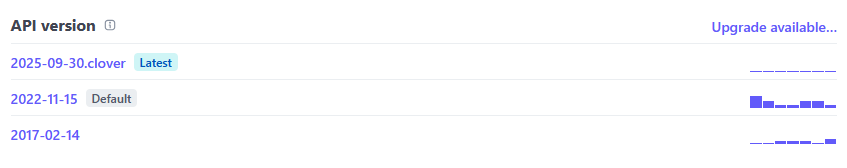 As for what Stripe version we're compatible with we're currently compatible up to 2025-08-27.basil. Latest is 2025-09-30.clover, which we have not updated for yet, but since our API calls are versioned it's not a problem to set your account to it.