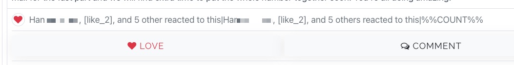 I'm not sure why I am seeing this below from reactions to a post.  Any ideas where to look to fix this?  (This is appearing in a group activity feed)