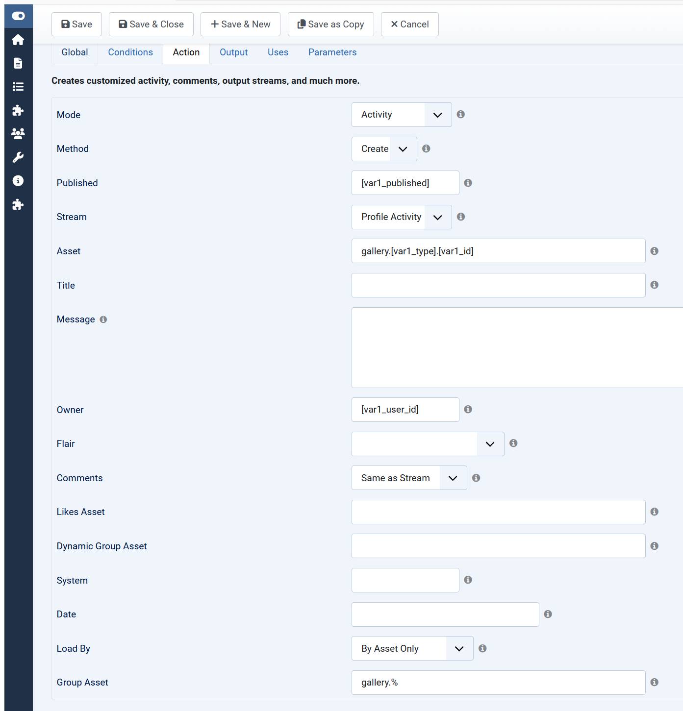 Here is my auto action that used to log the image uploads on the activity stream. What do i have to change?