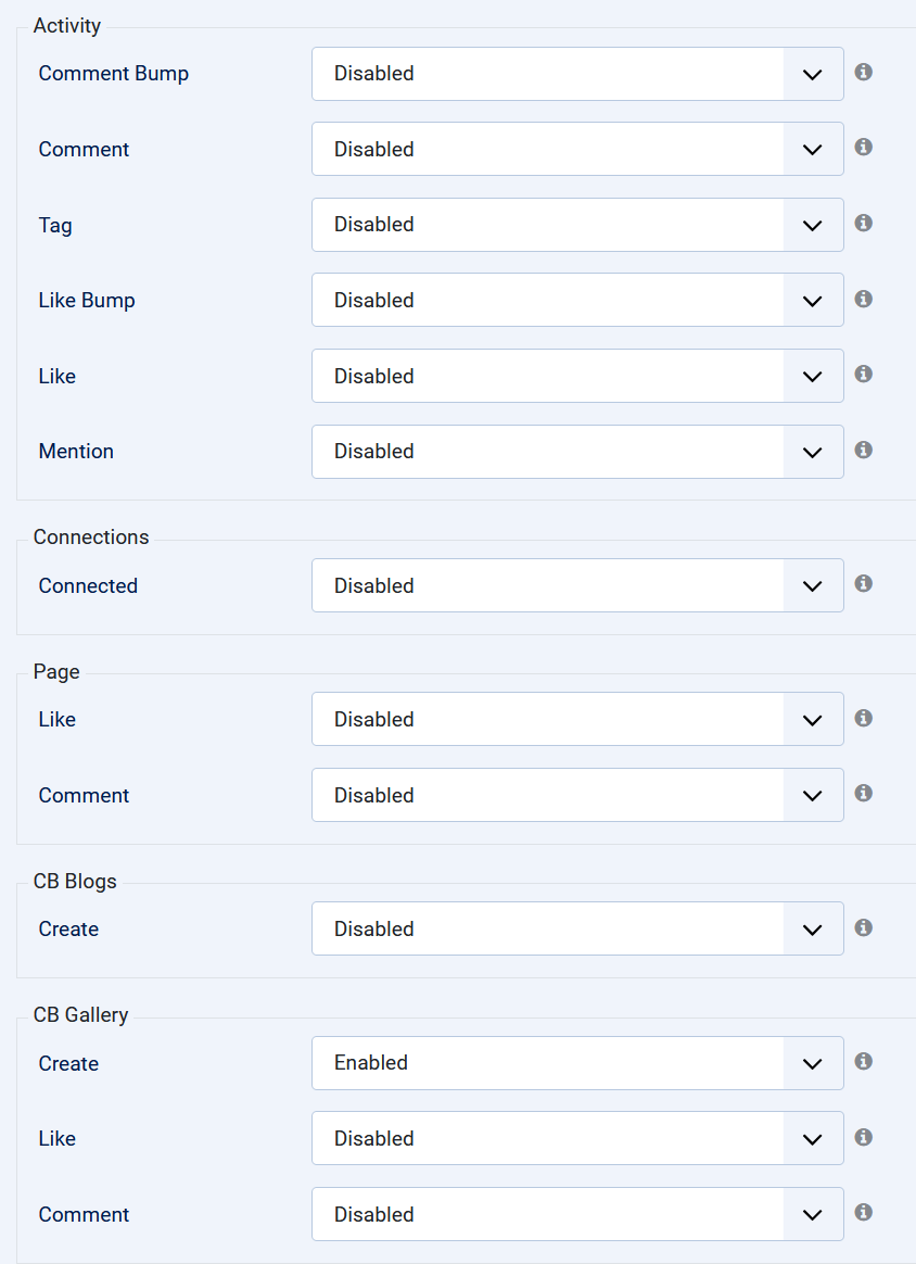 CB Activity > Streams > Activity > Profile Activity > Integrations > CB Gallery settings