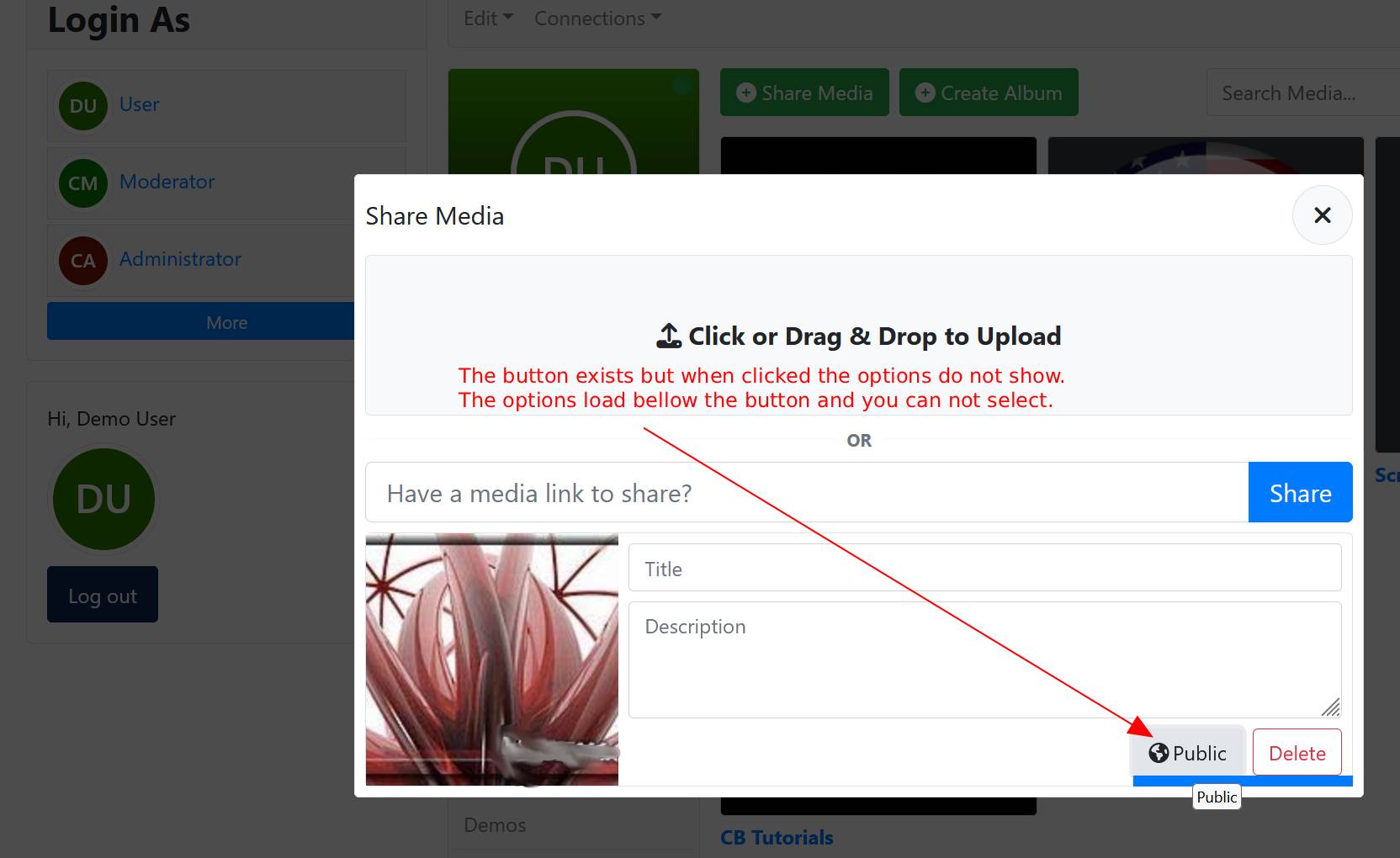 Check backend CB Gallery > Media. If it's there then the assets your gallery displays are incorrect, the gallery access is set incorrectly, or you've media upload approval enabled and they're awaiting approval. It's not possible for it to display the upload preview and it not have been uploaded. Please also be sure to review its asset carefully. I recommend comparing your install to our demo site galleries parameters as well as your parameter combination maybe need adjusting with the new galleries.Uploaded image to the gallery are not stored! User uploads image, image shows when returns to profile, but not after page refresh. Visited activity stream... nothing there. Visited again my gallery page, no uploaded image there.