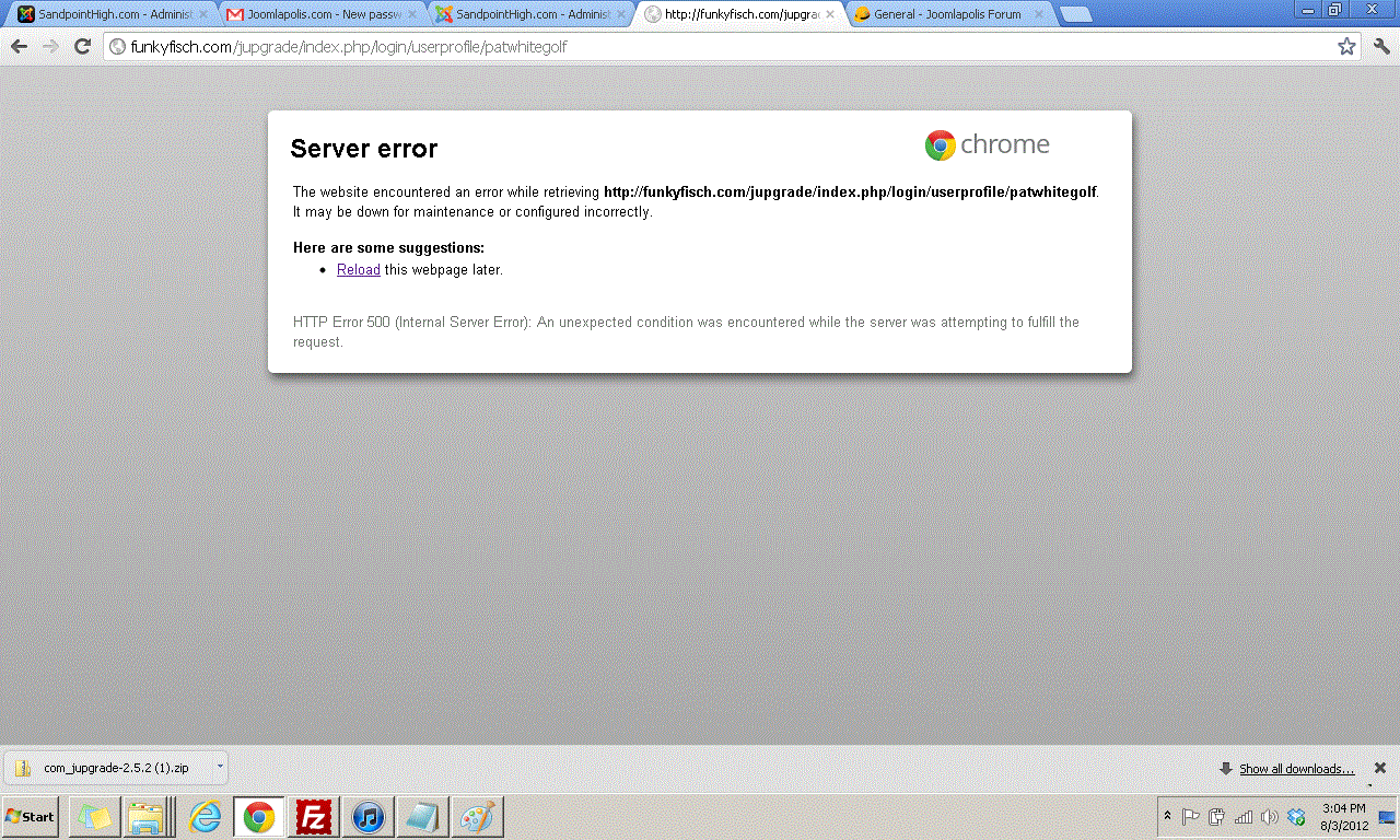 I notice on the webpage that goes to a page that doesn't work it shows a 500 error at the bottom and says something on server might not be configured right.