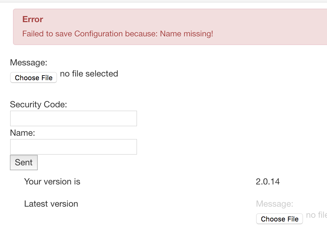 Failed to save Configuration because: Name missing!