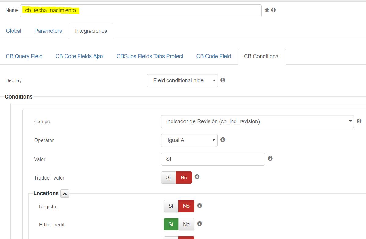 Using the CB Conditional integration with a Birth Date field, I hide it in profile edition. When I modify any field, on return, the date of birth has been initialized.