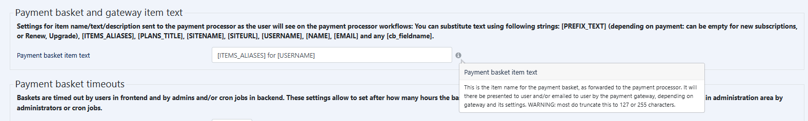 basket item text is what's actually being sent to the payment processor which they return in the text of the payment notification email. Is the comment on