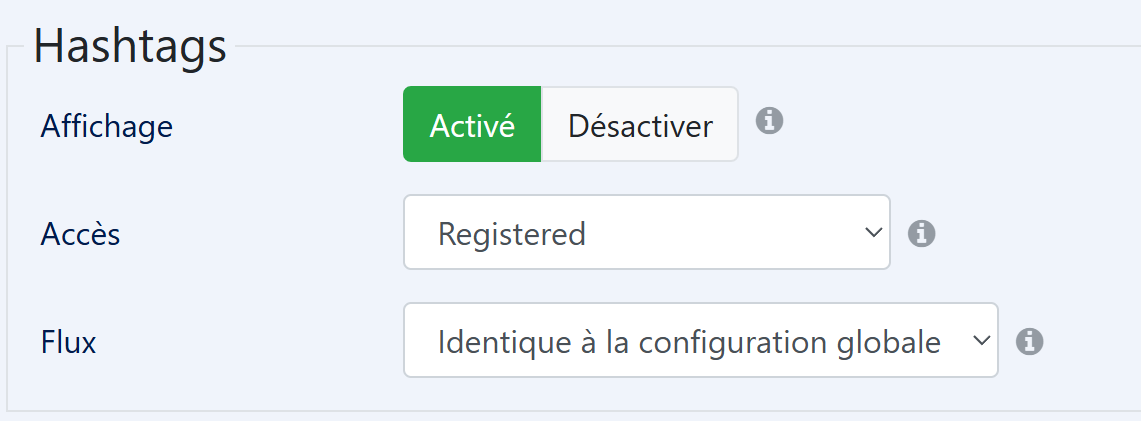 Hashtag parsing toggle is activated for all activity streams
