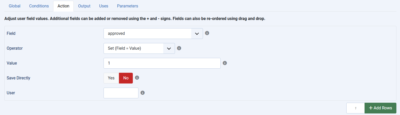 Next you'll use a Field action with the following configuration.