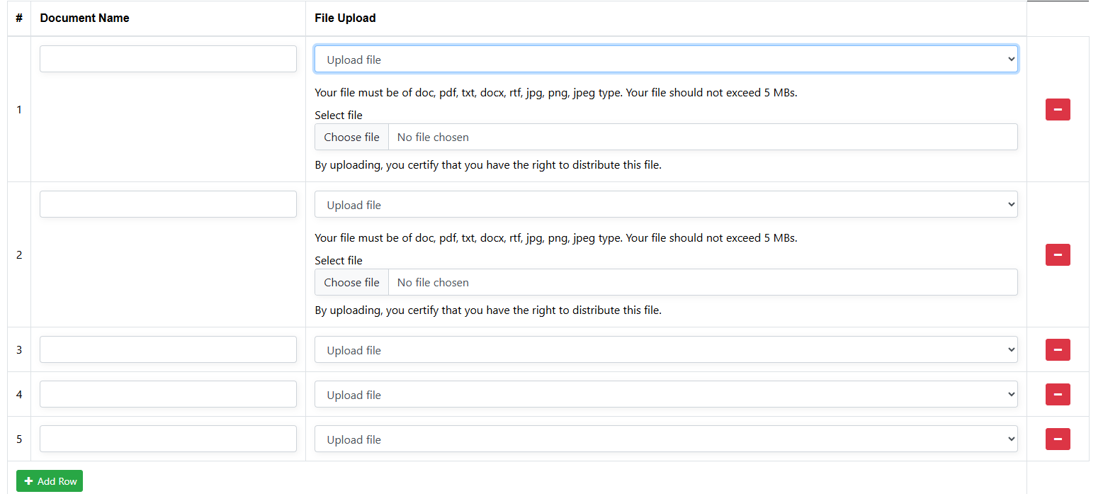 I've got a file upload group with two fields - document name and file upload. It has a limit of 20 documents.